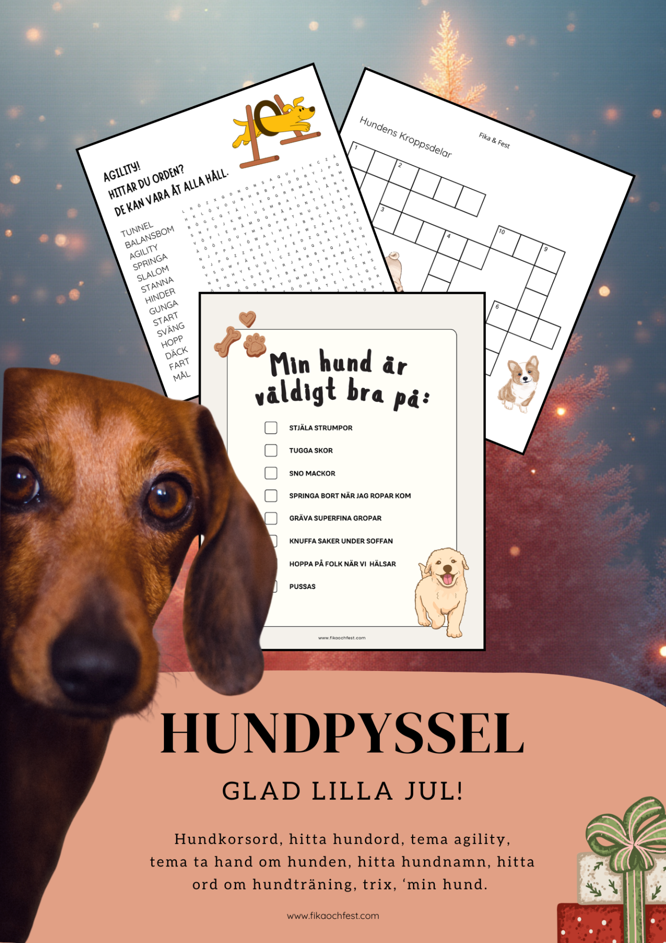 Här kan du ladda ner ett fantastiskt hundpyssel utan kostnad. Det passar ypperligt att göra till fikat för den hundintresserade. Pysslet har olika svårighetsgrader och det finns sådant som passar yngre barn men även lite svårare för t.ex. ungdomar.